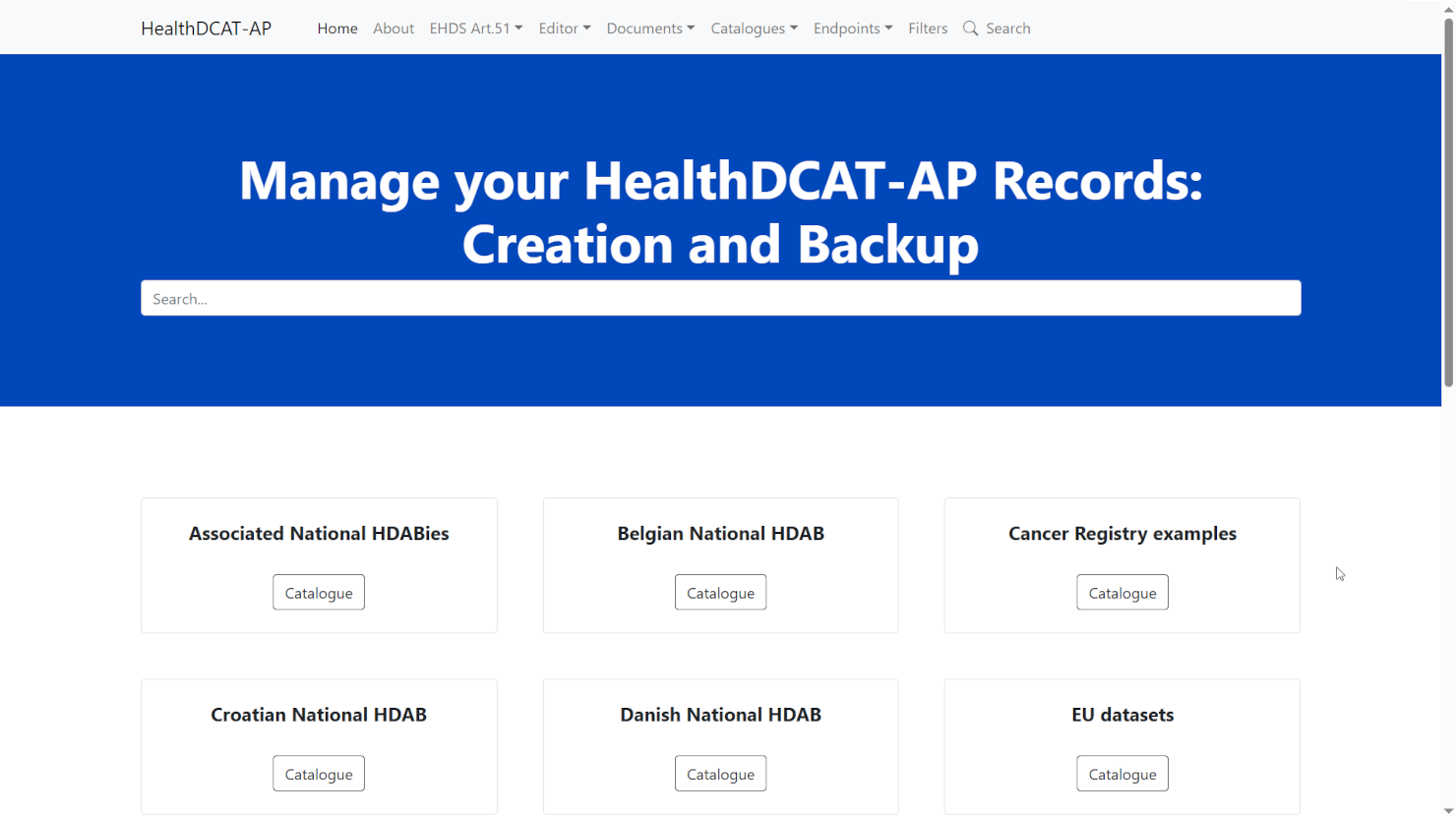 The demo catalog serves as a sandbox, enabling you to create and experiment with your own healthDCAT-AP metadata records. If you would like access, feel free to contact us at EHDS2@sciensano.be to request your credentials.